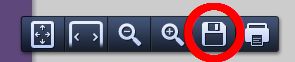 ④右から2つめのボタン(下の画像の赤い○のボタン)をクリックすると保存先を聞かれますので、デスクトップ等の分かりやすい場所に保存してから閲覧してください。